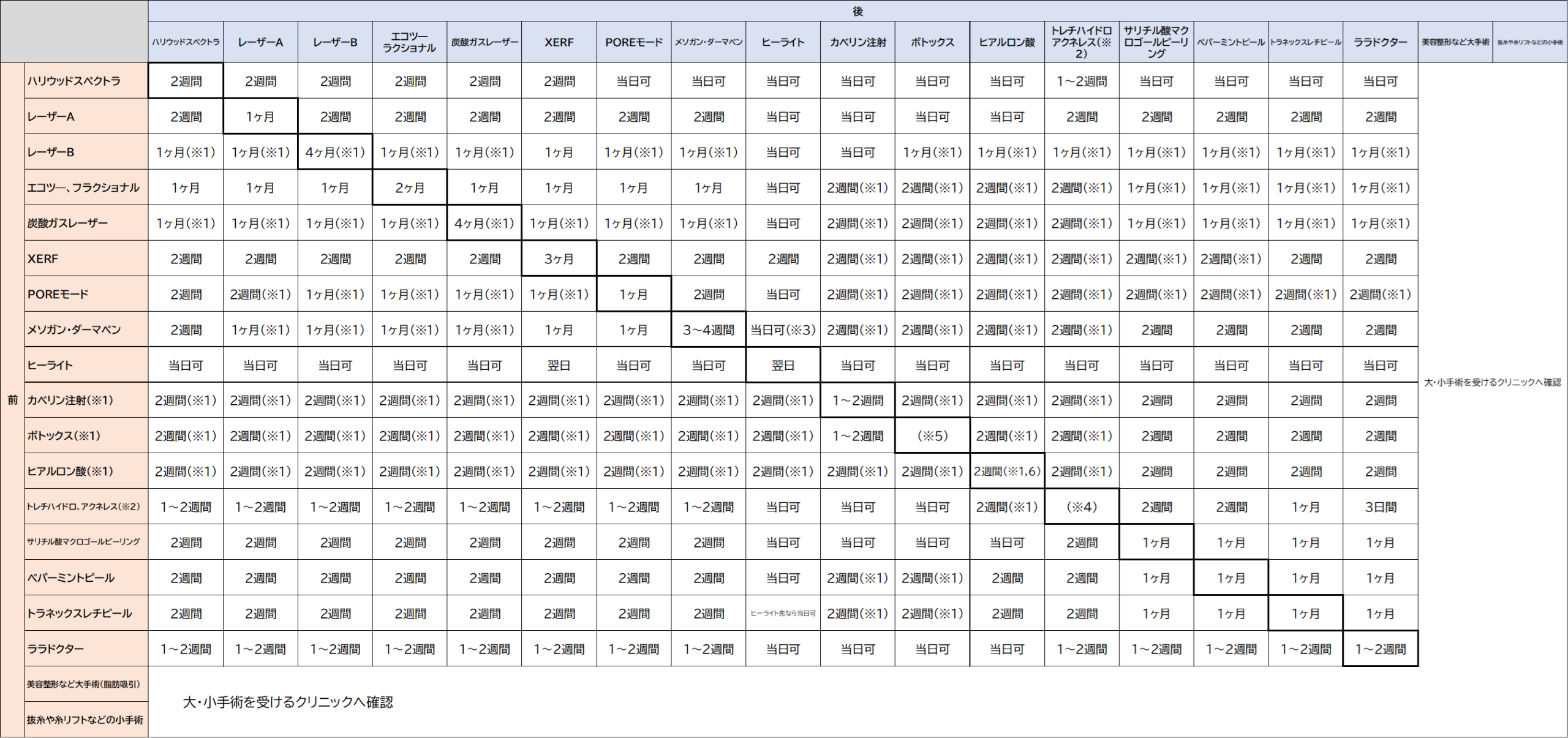 ★同一部位を施術する場合の施術間隔です。施術間隔は目安で、肌状態によります。